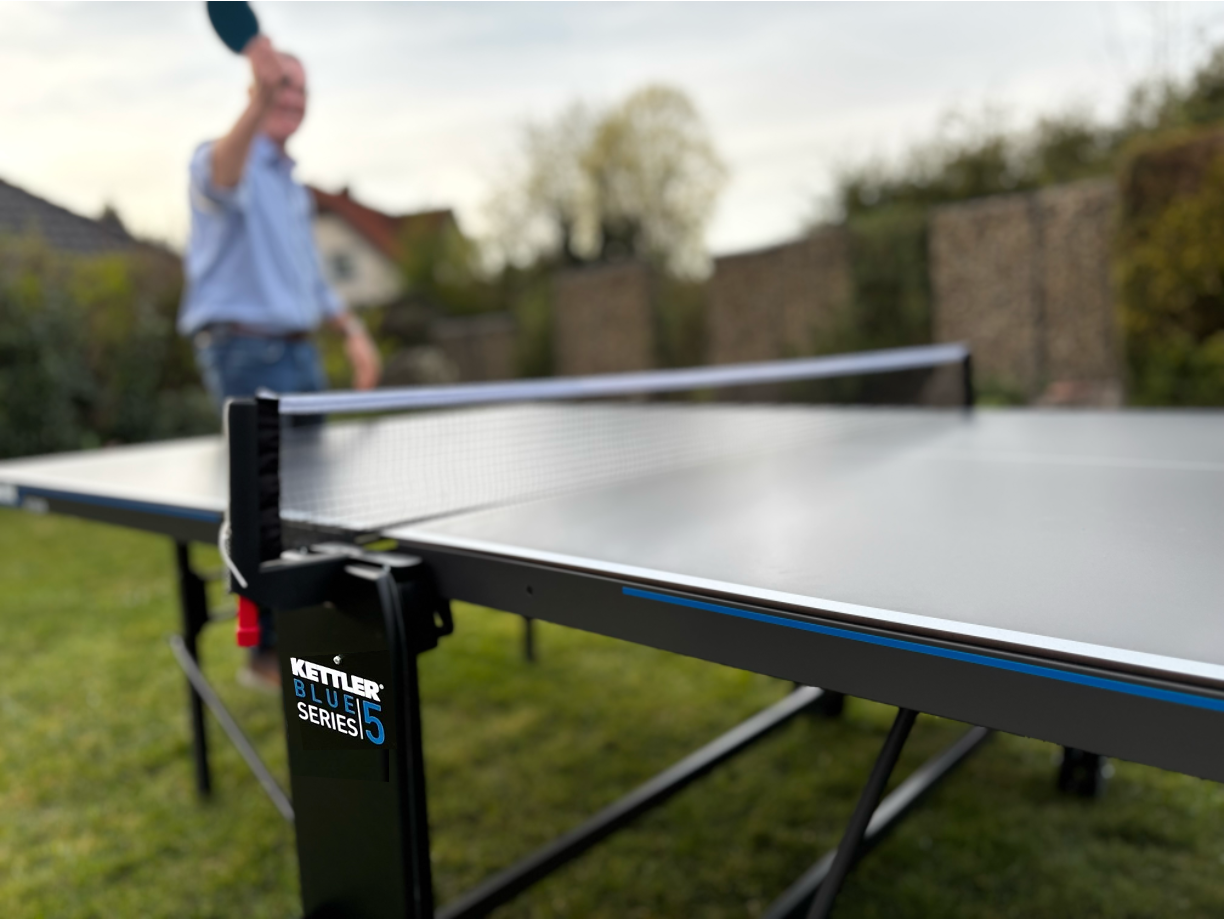Ihr habt keinen Tischtennistisch zur Hand? Dann empfehle ich euch die K5 Outdoor-Tischtennisplatte von Kettler. Sie hat ein super Preis-Leistungs-Verhältnis, ist wetterfest und weist hervorragend Spieleigenschaften auf!
